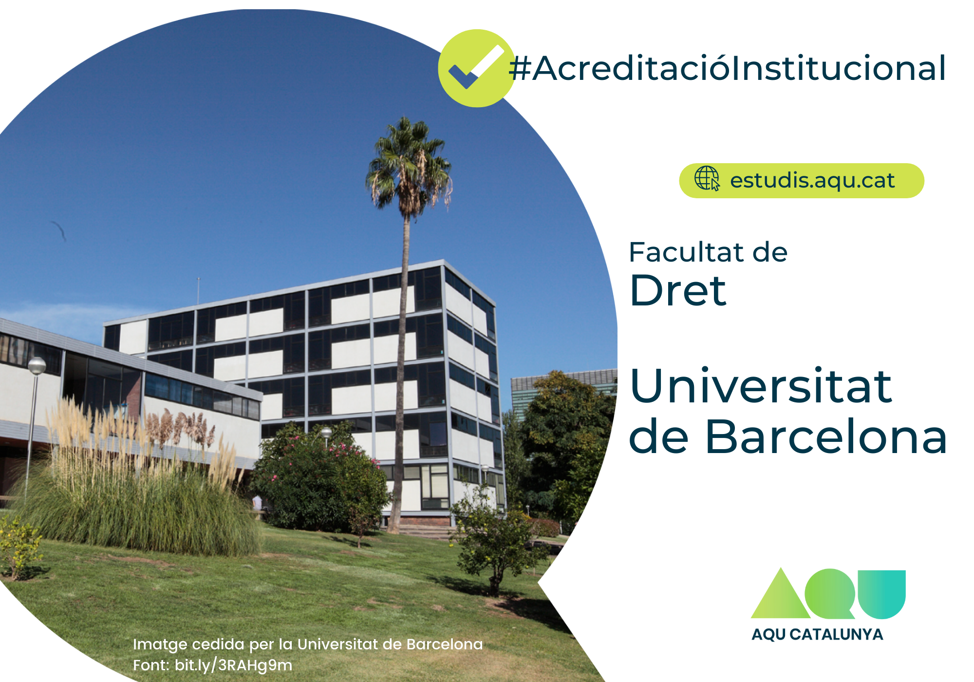 La Facultat de Dret de la Universitat de Barcelona ha estat acreditada institucionalment amb l’Informe favorable d’acreditació d’AQU Catalunya.