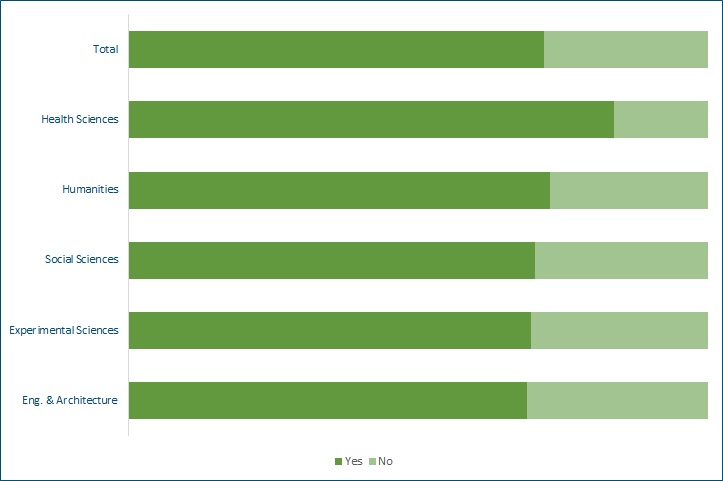 7 out of 10 graduates would choose the same degree if they were to start their studies over again. Although Humanities is the most unfavourable area as regards job quality, it has one of the highest percentages for those who would repeat the same degree, and came second only to Health Sciences.