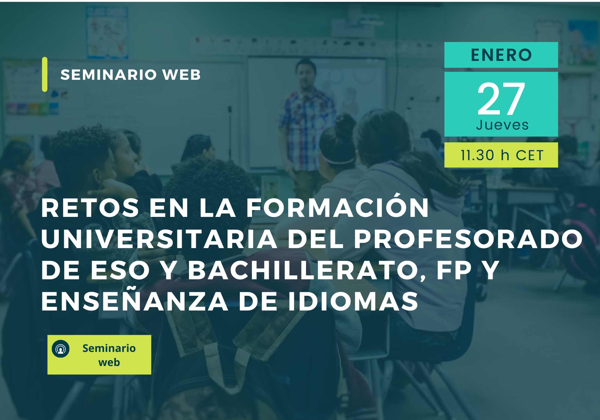 Abrimos las inscripciones al seminario web “Retos en la formación universitaria del profesorado de Educación Secundaria Obligatoria y Bachillerato, Formación Profesional y Enseñanza de Idiomas”
